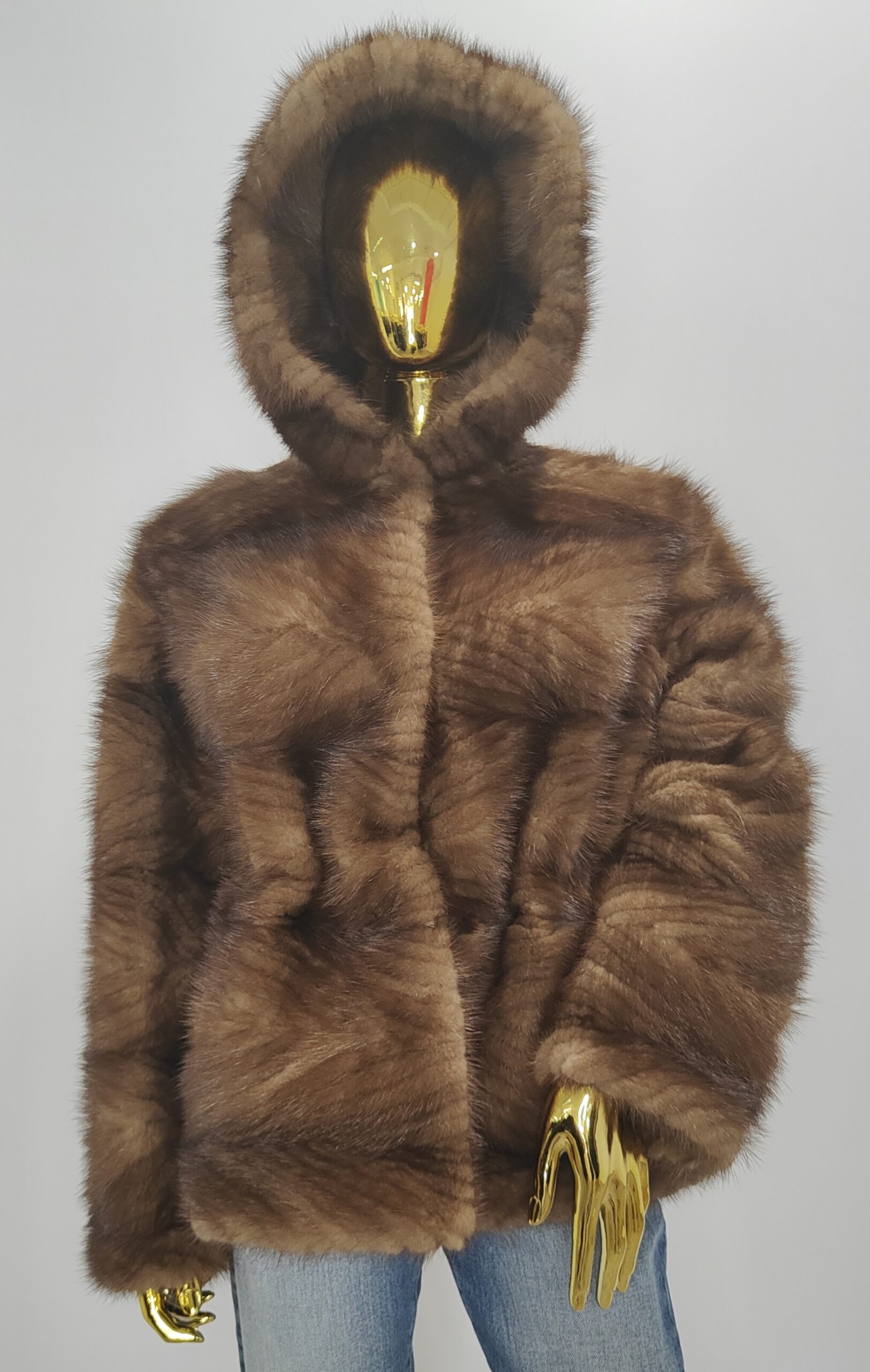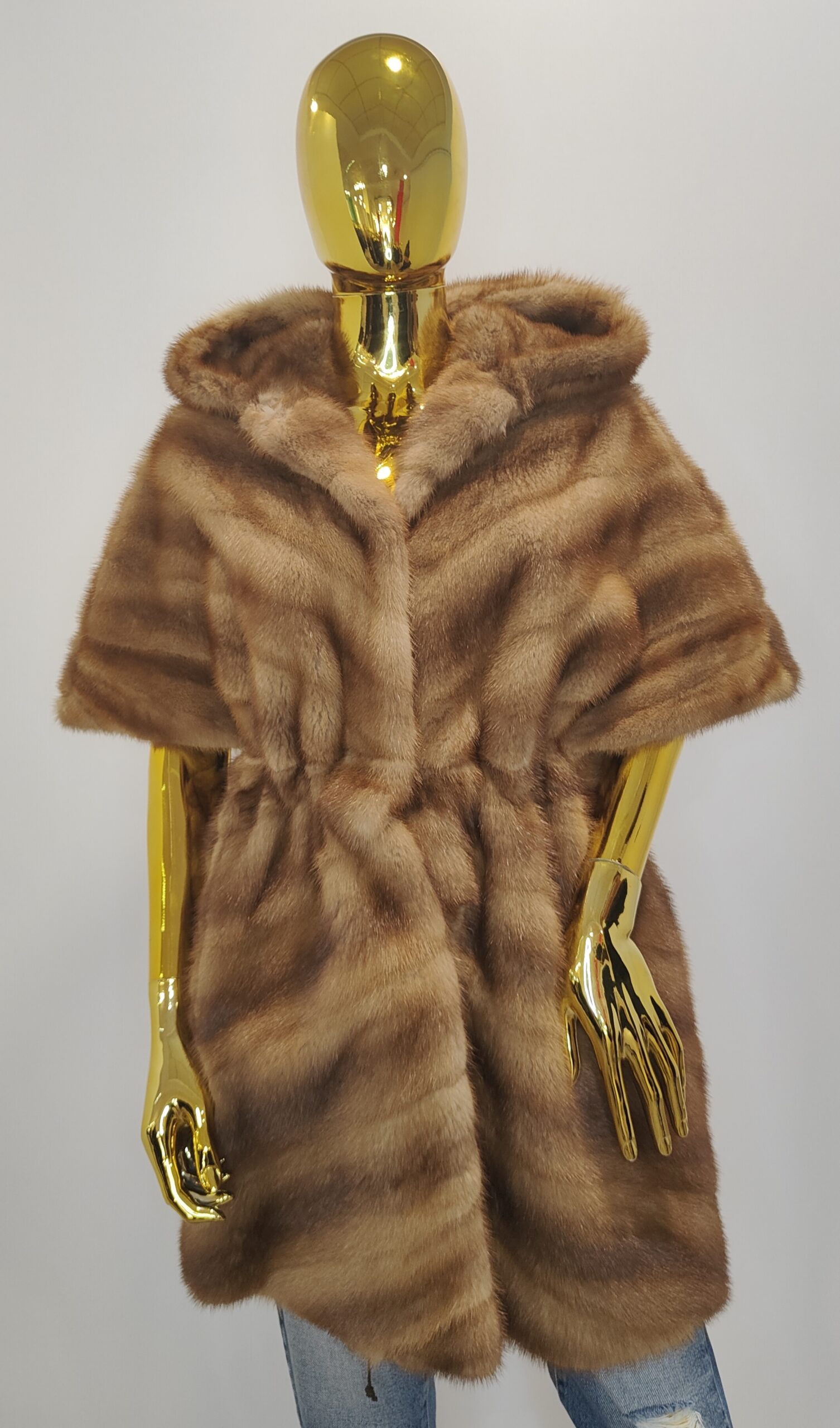 Haina de blana naturala de vizon maro si scurta cu nastrui
