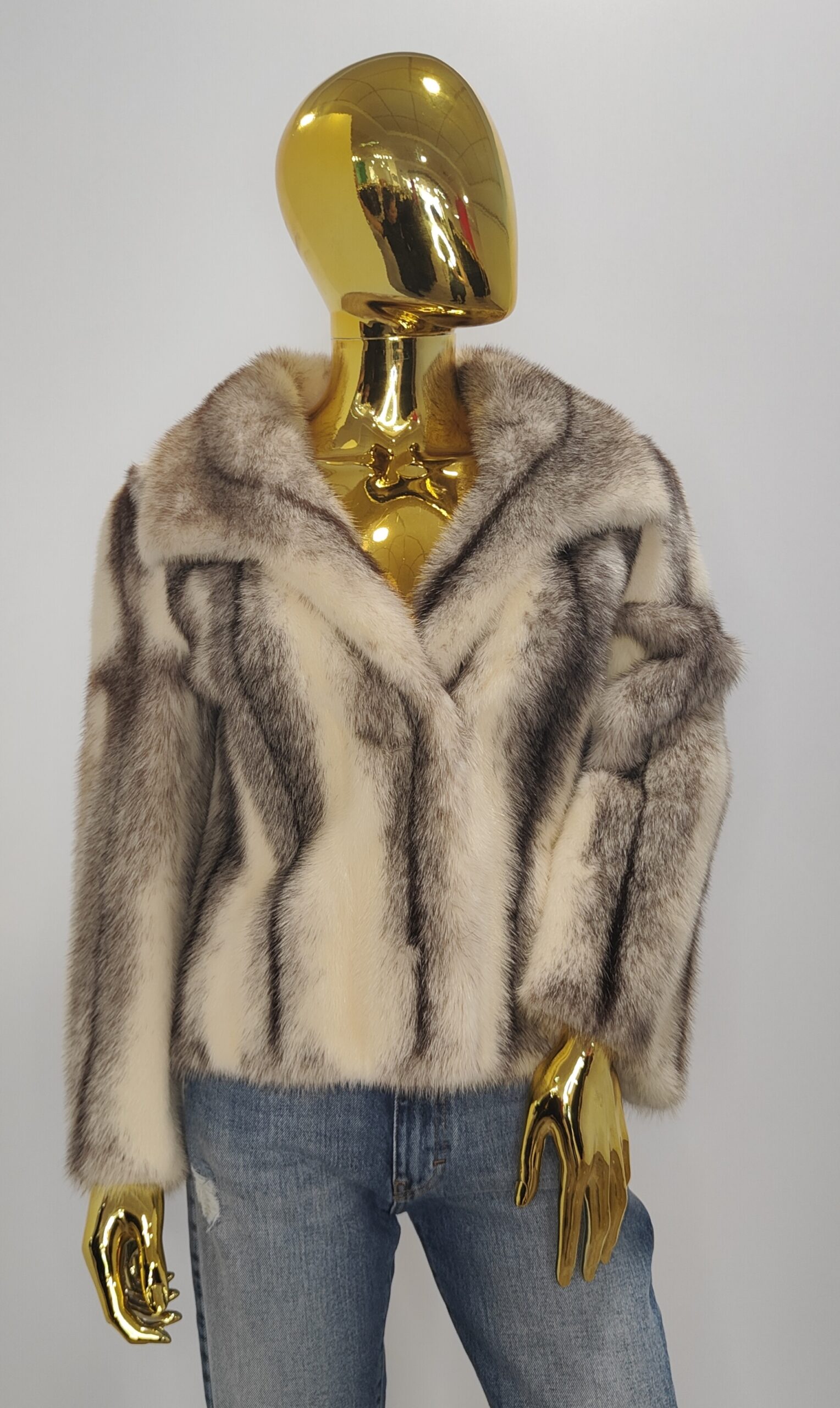Haina de blana naturala de vizon cu guler din blana de vulpe